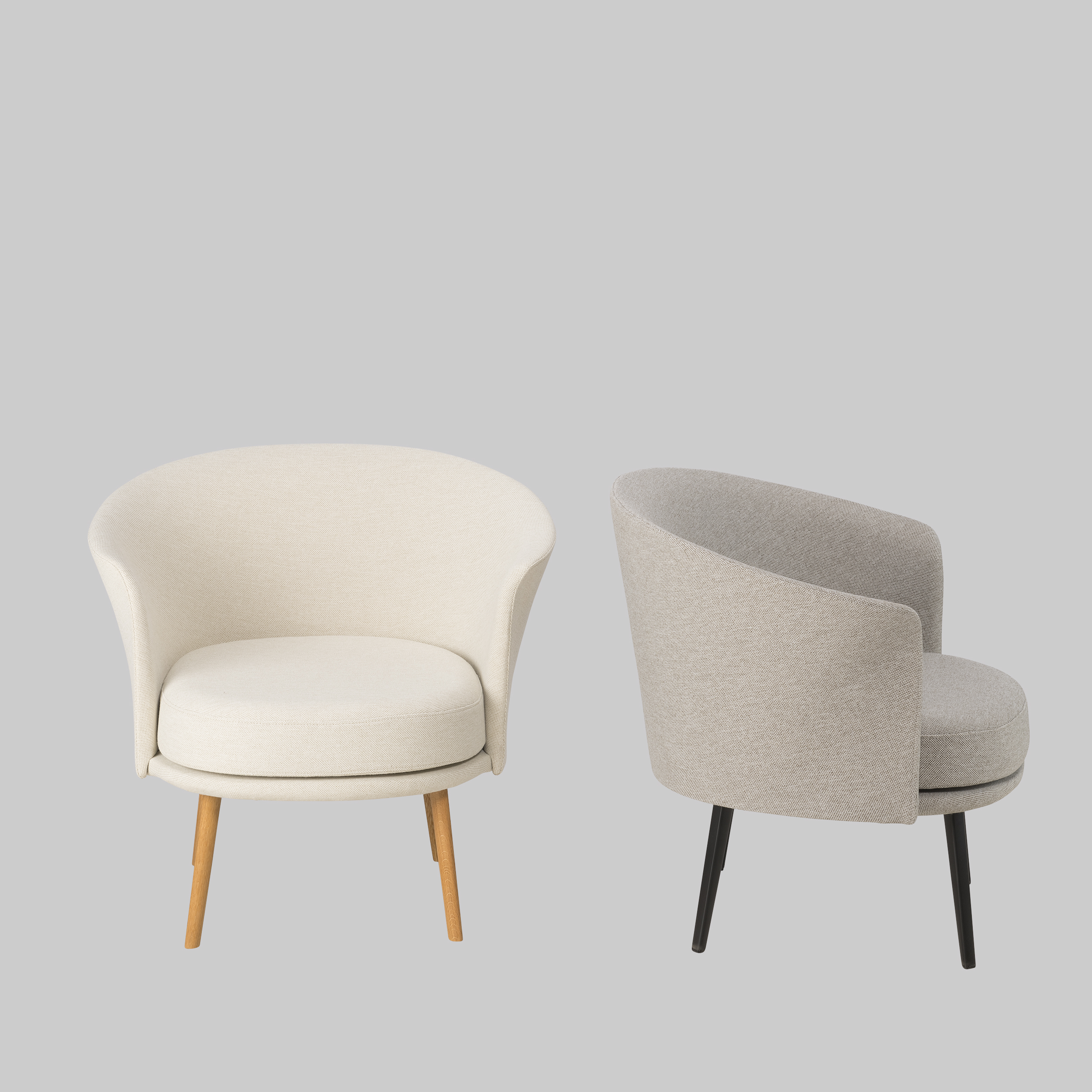 BB481La silla DORSO de HAY combina un diseño moderno con un confort de primera clase. El sillón giratorio está tapizado en una tela gris claro que resulta suave y ofrece un asiento cómodo. Las patas de acero con revestimiento en polvo negro le confieren una estructura robusta y un aspecto elegante. Gracias a la función giratoria, ofrece flexibilidad y una experiencia de asiento cómoda.
