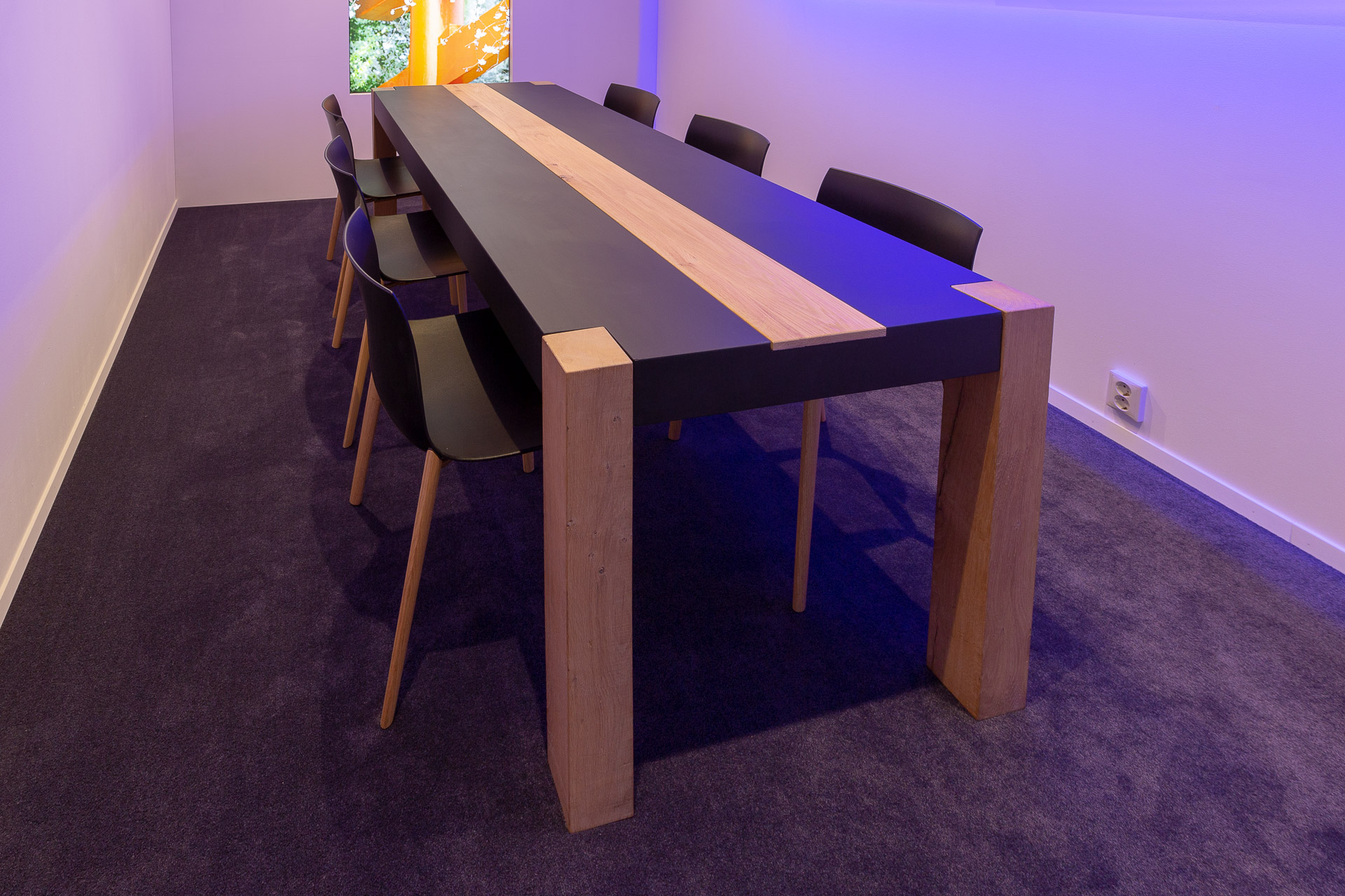 S545La silla CATIFA 53 Wood en color negro de Arper ofrece un elegante contraste para su stand de exposición. El asiento de plástico negro irradia elegancia, mientras que las patas de roble añaden un toque cálido y natural. Con una altura de asiento de 45 cm, esta silla es versátil para presentaciones o conversaciones relajadas. Su peso ligero de 5,9 kg garantiza flexibilidad en la disposición de su stand, esencial para realizar ajustes rápidos durante eventos concurridos.
